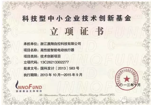 浙江澳翔自控科技有限公司于2016年11月28號正式成為中國石油天然氣集團(tuán)公司指定一級供應(yīng)商(指定產(chǎn)品類型:角行程電動(dòng)執(zhí)行器、直行程電動(dòng)執(zhí)行器、多回轉(zhuǎn)電動(dòng)執(zhí)行器)。
