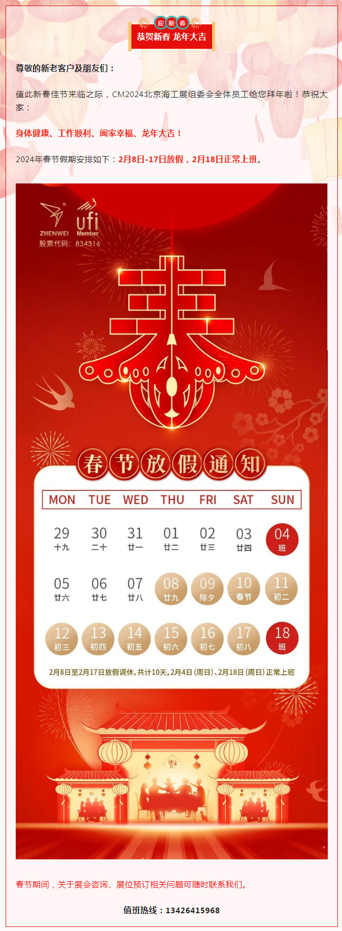 放假通知| CM2024北京海工展恭祝龍年大吉!