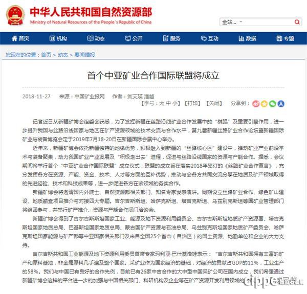 自然資源部:首個中亞礦業(yè)合作國際聯(lián)盟將成立
