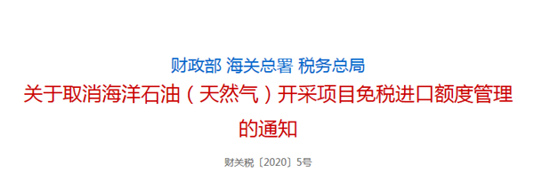 3月30日,財政部、海關(guān)總署、稅務(wù)總局三部門公布關(guān)于取消海洋石油(天然氣)開采項目免稅進口額度管理的通知。通知規(guī)定,開采海洋油氣,進口鉆井鉆機勘探船等設(shè)備,將取消免稅額度管理。