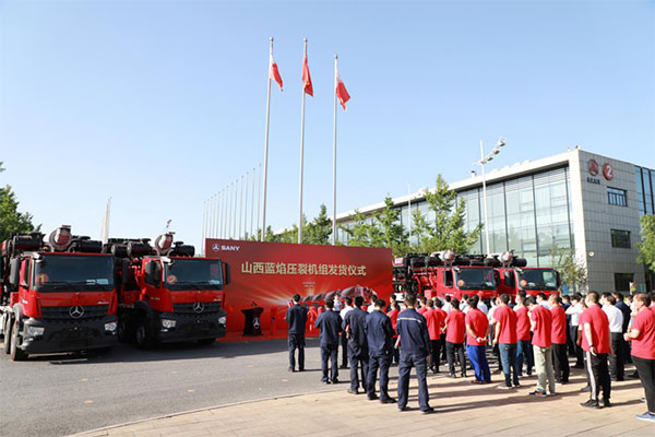 山西藍焰壓裂機組發(fā)貨儀式現(xiàn)場