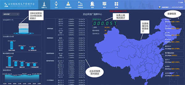物聯(lián)網(wǎng)大數(shù)據(jù)平臺(tái):用于油氣田開(kāi)采生產(chǎn)工藝全過(guò)程,涵蓋注水流程監(jiān)控、油井生產(chǎn)管理、站內(nèi)生產(chǎn)檢測(cè)、視頻監(jiān)控、鉆井?dāng)?shù)據(jù)采集及隨鉆數(shù)據(jù)采集。