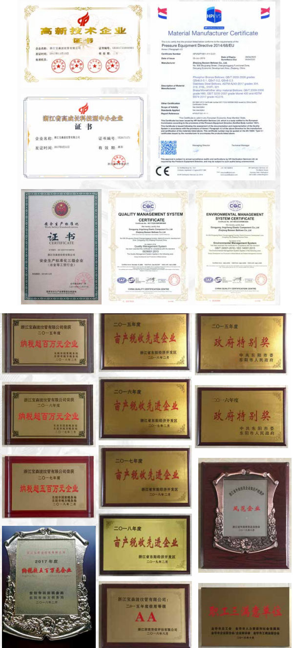 公司擁有 ISO9001;ISO14001;IATF16949;PED;安全生產(chǎn)標(biāo)準(zhǔn)化等多項(xiàng)認(rèn)證,是 國(guó)家高新技術(shù)企業(yè)、浙江省中小型科技型企業(yè),擁有各類專利 20 多項(xiàng)。